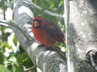 The Northern Cardinal is a mid-sized songbird with a body length of 21 centimeters. It has a distinctive crest on the head and a mask on the face which is black in the male and gray in the female. The male is a vibrant red, while the female is a dull red-brown shade. The Northern Cardinal is mainly granivorous, but also feeds on insects and fruit. The male behaves territorially, marking out his territory with song. During courtship, the male feeds seed to the female beak-to-beak. A clutch of three to four eggs is laid, and two to four clutches are produced each year. It was once prized as a pet, but its sale as cage birds is now banned in the United States by the Migratory Bird Treaty Act of 1918.